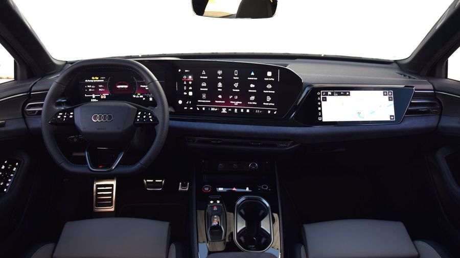 Cyfrowy kokpit MMI z dwoma panoramicznymi ekranami i nowoczesną kierownicą gwarantuje intuicyjną obsługę, zaawansowane funkcje nawigacyjne oraz pełną integrację ze smartfonem i systemami Audi connect.