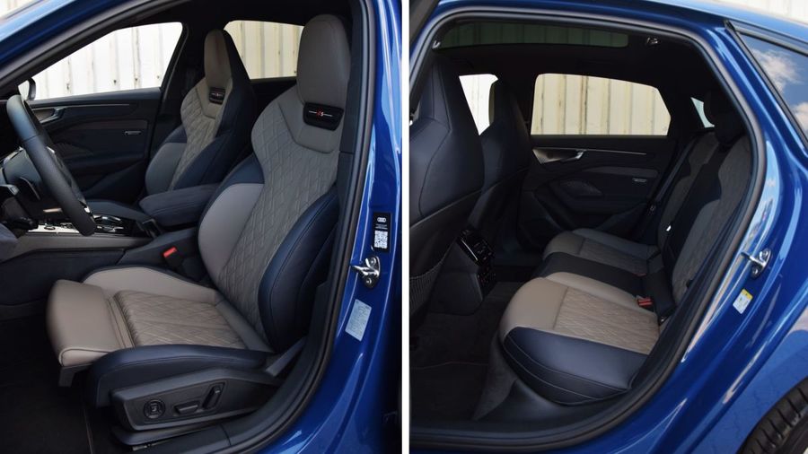 Komfortowe, welurowo-skórzane sportowe fotele przednie oraz przestrzeń dla pasażerów z tyłu zapewniają wygodę i ergonomię nawet podczas długich podróży, a dbałość o detale świadczy o klasie premium auta.