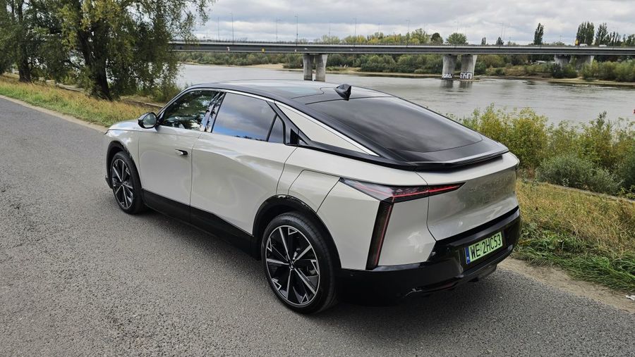 Z kolei profil ujawnia nietypową linię samochodu. Jest w niej coś z crossovera i coupe. Wrażenie robią zwężające się przeszklenia, które uzupełnia opadający dach. Natomiast tył utrzymuje motyw świetlny pasa przedniego. Ciekawostkę stanowi spojler zamontowany pod krawędzią szyby.